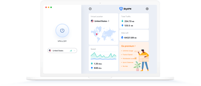 With our worldwide VPN servers, SkyVPN allows you to enjoy the seamless VPN connection wherever you are. No throttling, no restrictions, no bandwidth limits.